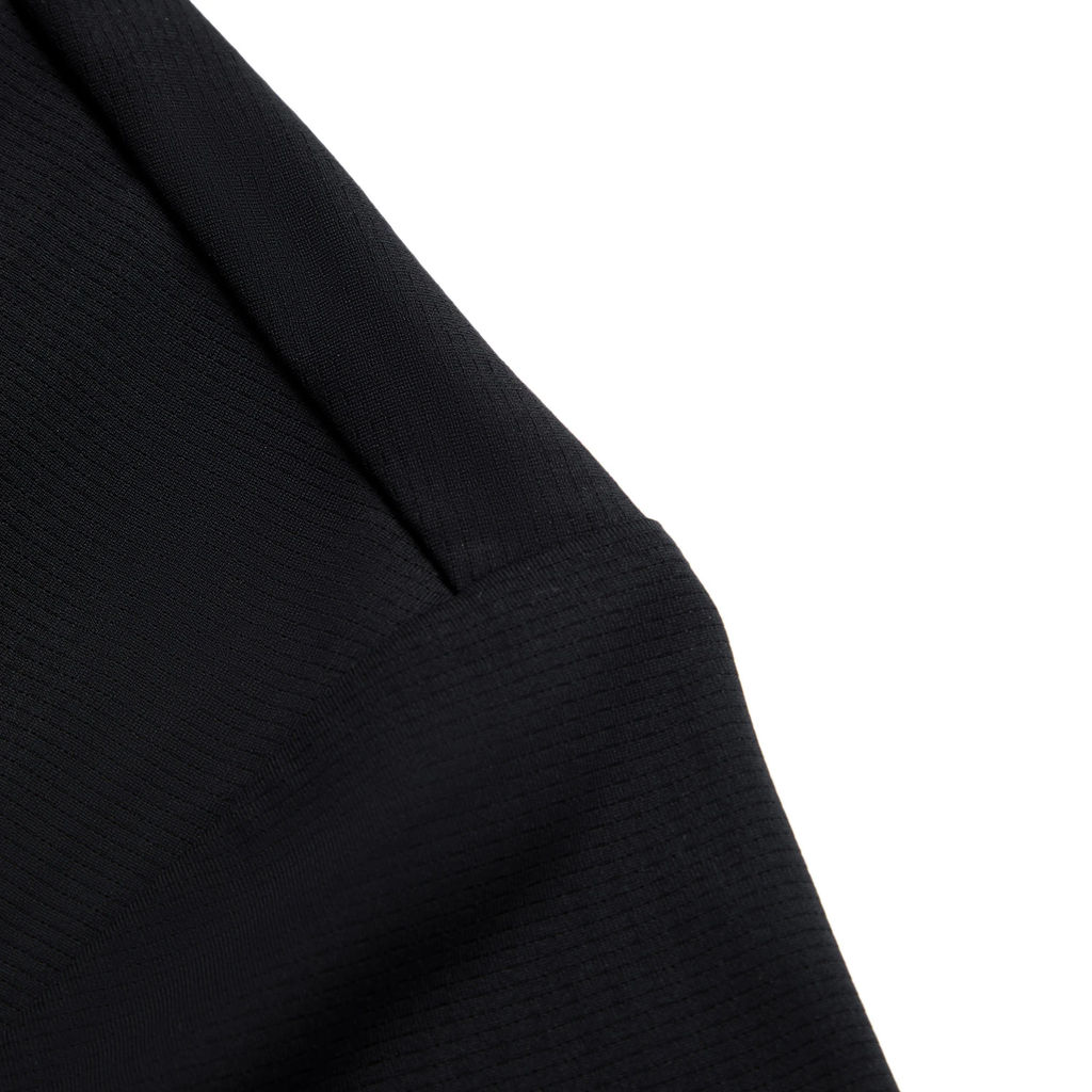 Sử dụng sợi vải đặc biệt mềm mại, thân thiện với da, vân lỗ thoáng khí trên toàn bộ áo giúp áo có khả năng thoáng khí vượt trội giúp cơ thể thoát mồ hôi nhanh chóng, sợi vải kết cấu đặc biệt có thính năng khô nhanh