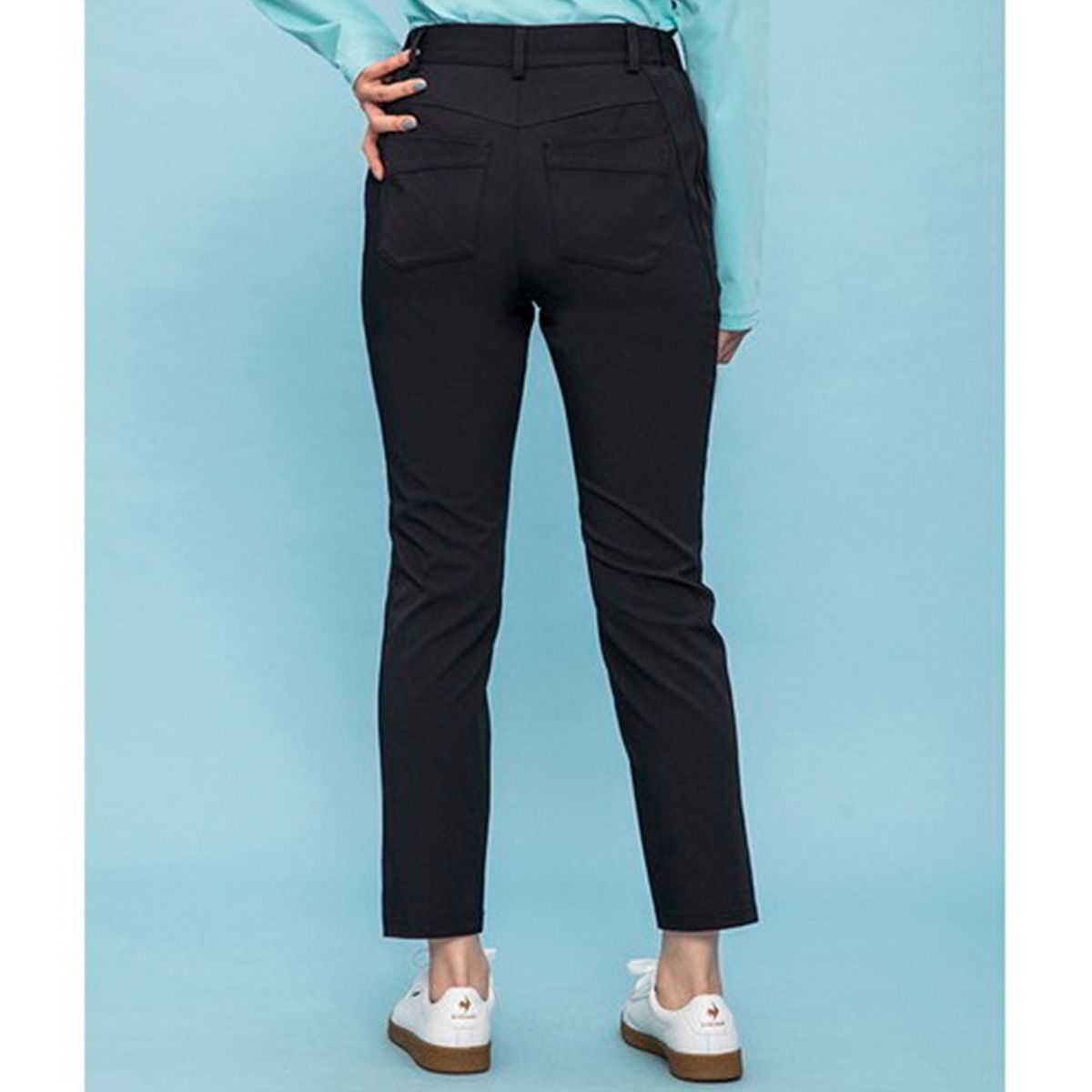 Điểm nhấn thiết kế của sản phẩm nằm ở khẩu hiệu “mỏng, dài và đẹp”. Các chi tiết chính bao gồm: một đường thẳng tinh tế giúp tôn mông hơn, các đường xẻ và đường cong ở hai bên làm chân dài hơn, cùng kiểu dáng đầu gối cao hơn, tạo nên vẻ ngoài thon gọn và cân đối. Phần mở phía trước và đai thắt lưng dễ điều chỉnh mang lại sự tiện lợi, phù hợp cho sử dụng hàng ngày. Logo được thiết kế cùng tông màu với quần là chi tiết giúp sản phẩm dễ dàng diện trong mọi hoàn cảnh, từ sân golf đến các hoạt động thể thao hoặc phong cách casual thường ngày.